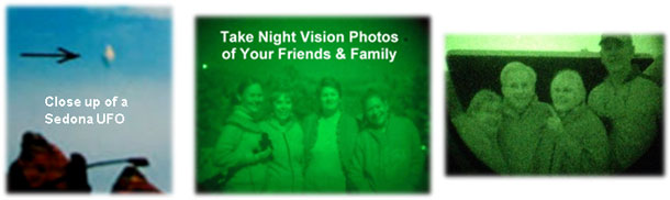20,000 times more light than is possible with the naked eye and increasing your chances of having a Sedona UFO sighting by 20,000 times! We’re so certain we’ll have sightings we have a money-back guarantee!